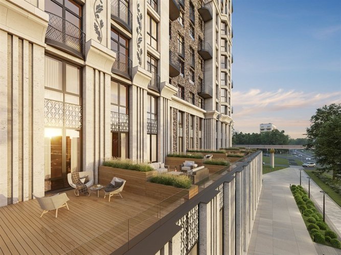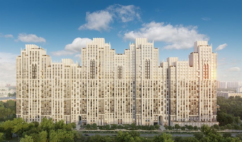 Архитектура дома — современное прочтение торжественного и изящного стиля ар-деко. Элементы неоклассического стиля: карнизы, эркеры, арки, балконы с декоративными металлическими решетками и стремящиеся ввысь пики — все придает дому особую торжественность и подчеркивает его красоту. В доме будет 6 подъездов. Этажность от 21 до 28, что обеспечит панорамные виды на город.