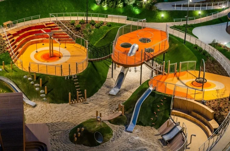 Зоны спокойного отдыха: уютный пруд с лавочками, беседки, 5 пеших маршрутов для променада, уникальная общественная гостиная с открытой террасой и гамаками - центр притяжения для жителей и прекрасный наблюдательный пункт за играющими детьми.