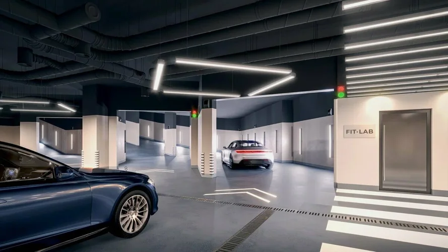 На двух подземных этажах расположен красивый, выполненный в стиле дома, паркинг на 835 машино-мест с удобной навигацией.