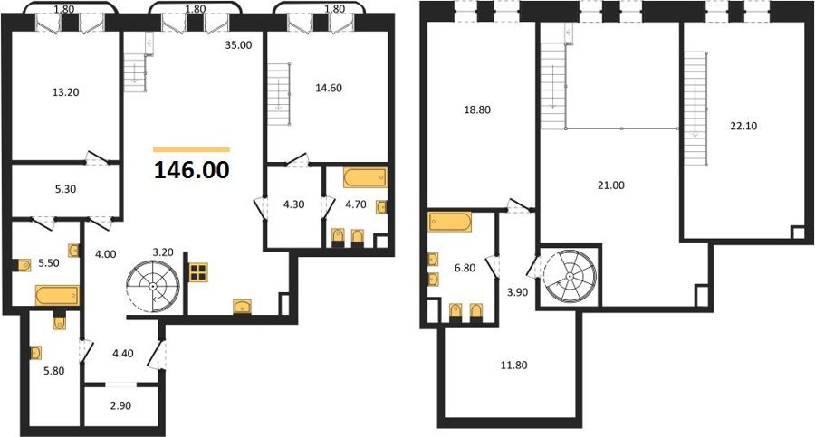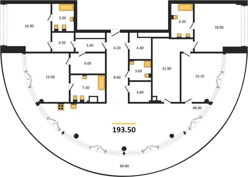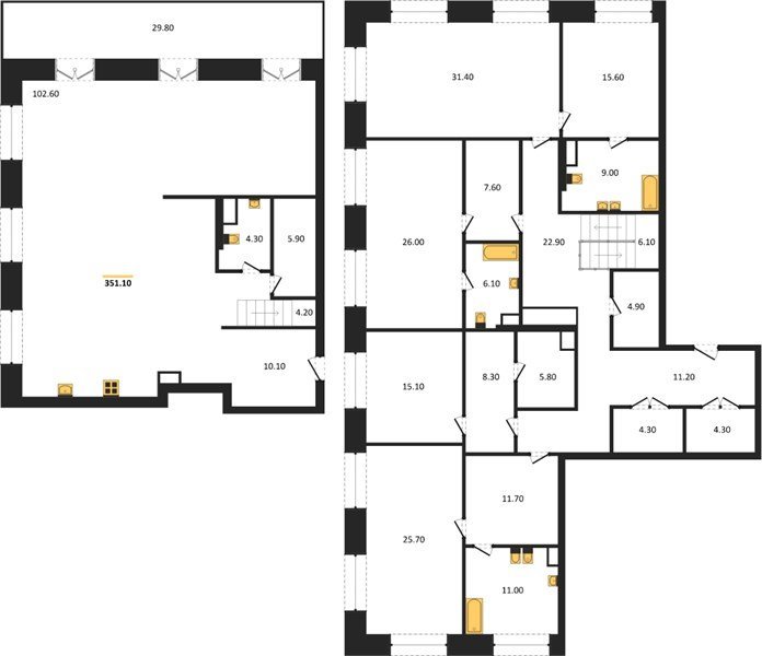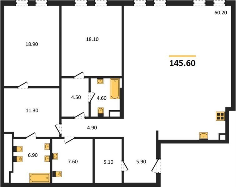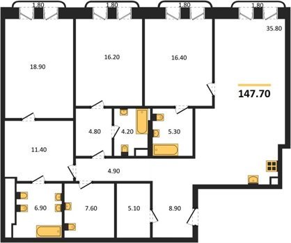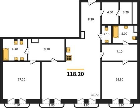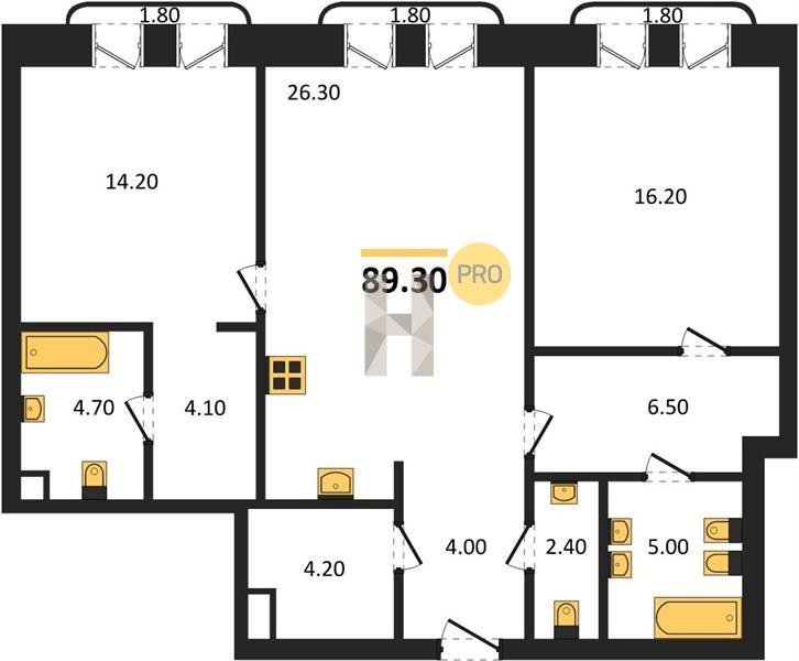 Площадь от 86.1 м2
