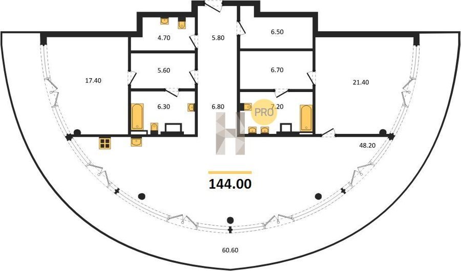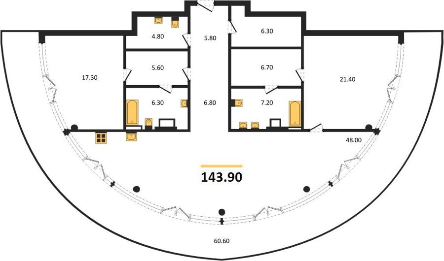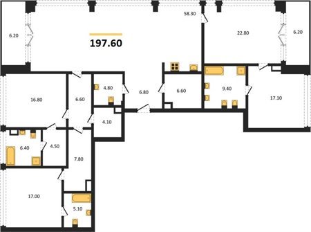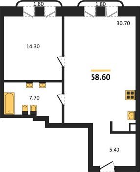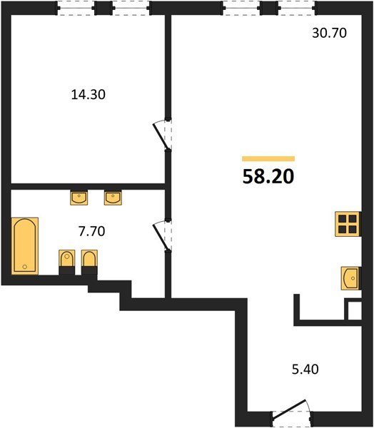 Площадь от 58.2 м2