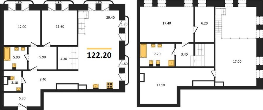 Площадь от 122.2 м2