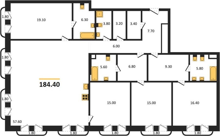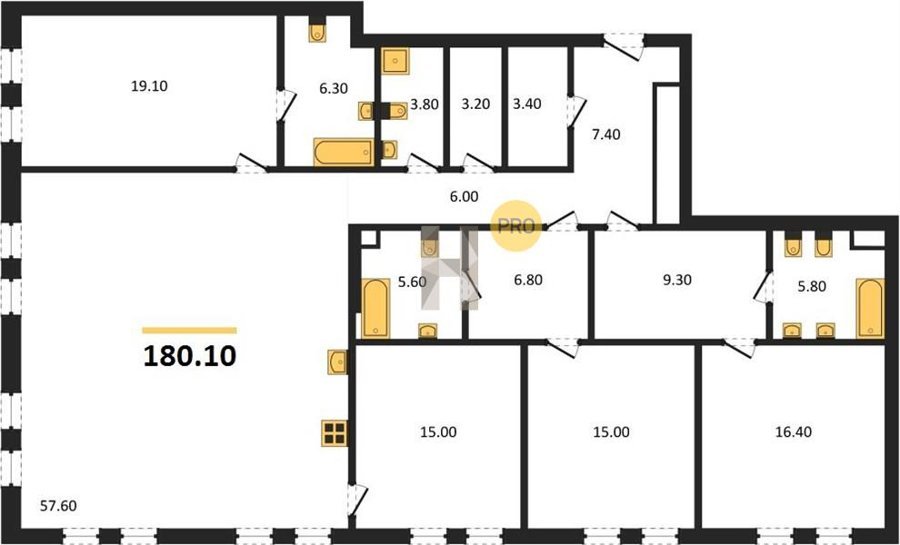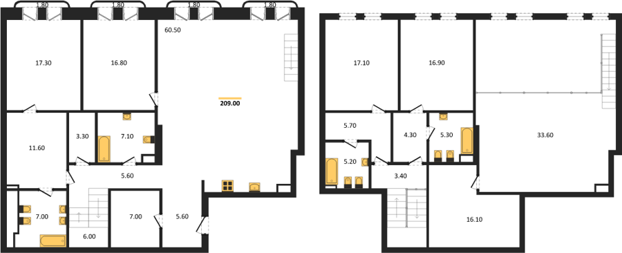 Площадь от 180.1 м2