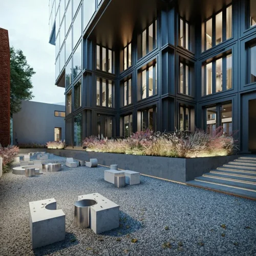 Архитектурный проект задуман как городская скульптура — контуры 13-этажного здания напоминают работы русских художников - авангардистов. я предполагает строительство комплекса площадью 10000 кв.м.