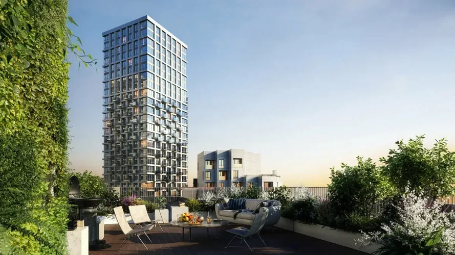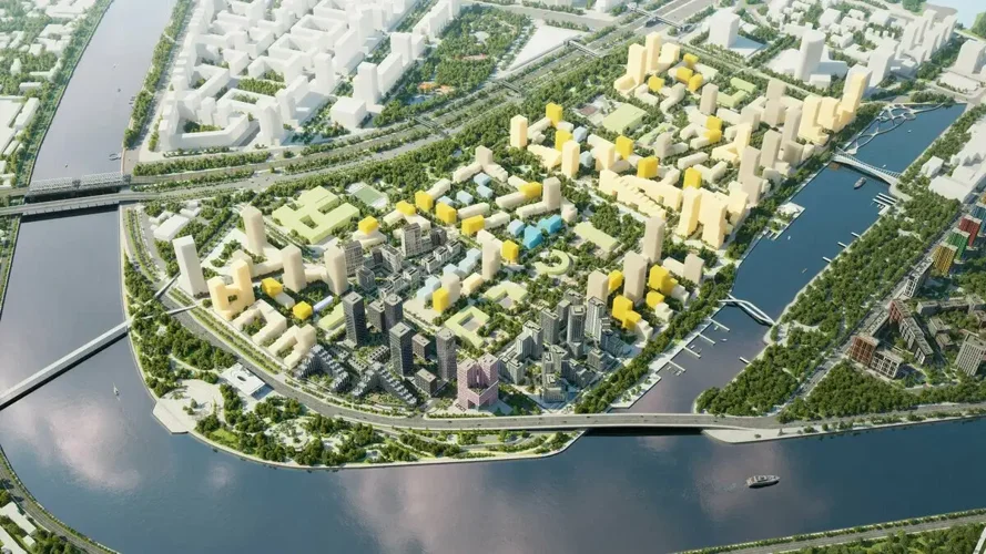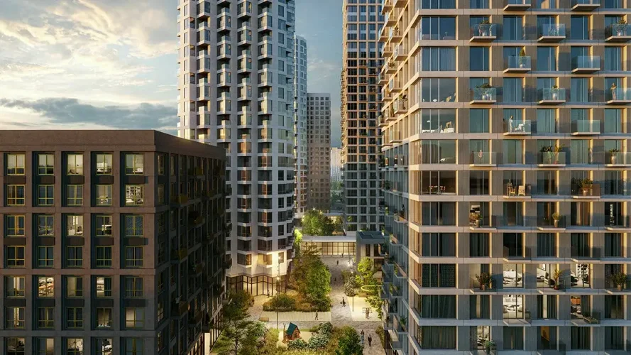 Главной особенностью жилого квартала является соседство разных типологий застройки и форматов жилья — от таунхаусов до небоскребов.