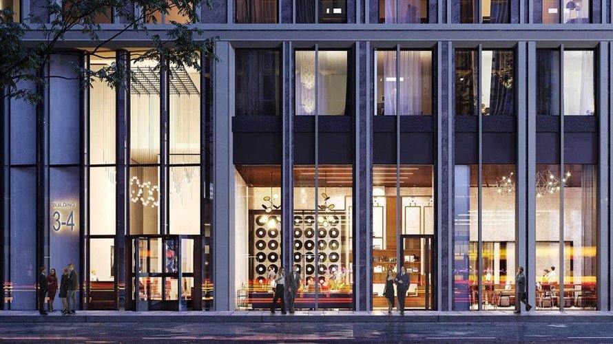 Архитектурное решение от международного бюро предполагает сочетание фасадов различных фактур, материалов, цветовых решений и зданий разной высотности. Совмещение натурального камня и алюминия в отделке подчеркивает премиальный класс комплекса